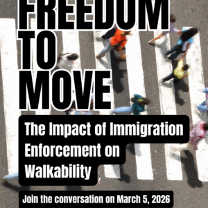 Freedom to Move: The Impact of Immigration Enforcement on Walkability March 5, 2026 2:00 p.m. ET / 11:00 a.m. PT Everyone deserves ... 05 Mar 1:00 pm - 6:00 pm Virtual