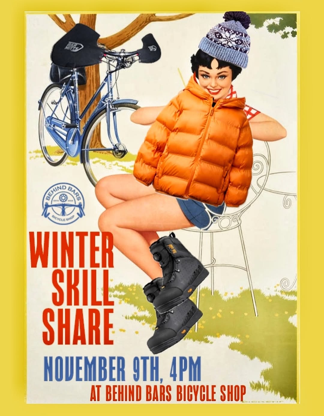 Curious about riding in the winter? Have valuable knowledge you’d love to share? Scared of perpetual wet ass and want to prevent it? Come to our winter riding skills share @behindbarsbicycleshop Sunday, November 9th at 4pm (after hours).