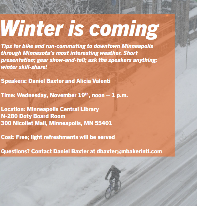 Winter is Coming! tips for bike and run commuting to downtown Mpls.