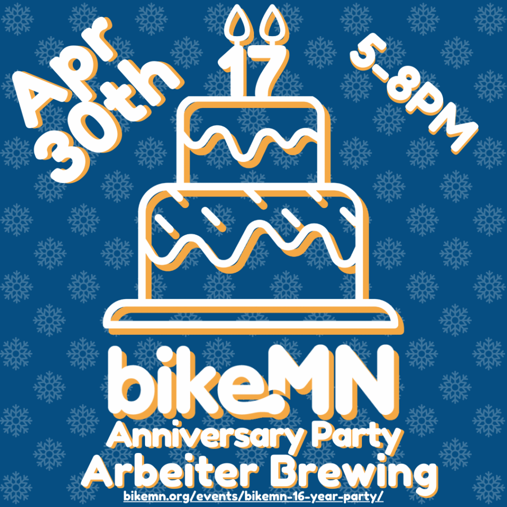 If you’re interested in representing your organization at the party or sponsorship opportunities please reach out to info@bikemn.org.
